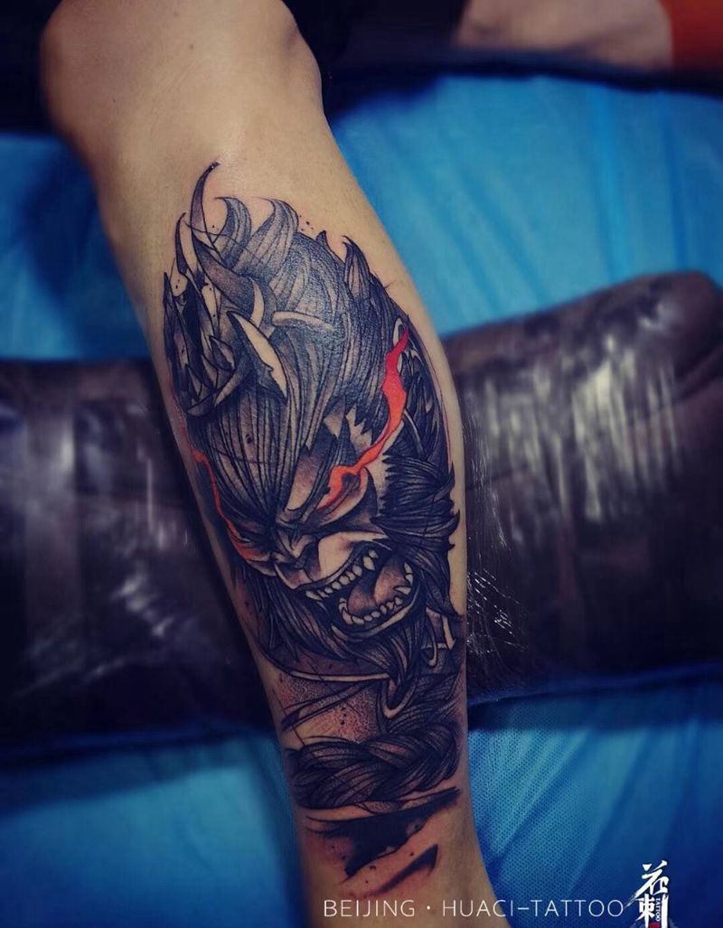 当前位置: 首页 >北京市纹身店-北京花刺纹身工作室纹身图案>斗战胜佛纹身图片_腿部水墨点刺斗战胜佛猴子孙悟空纹身图案