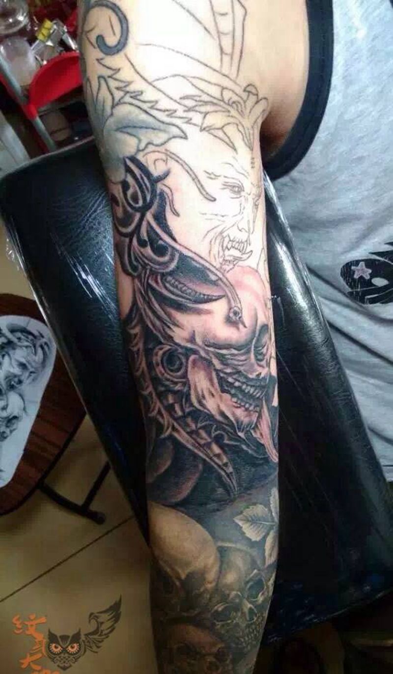 当前位置: 首页 >北京市纹身店-北京花刺纹身工作室纹身图案>接花臂 未完作品纹身图片_