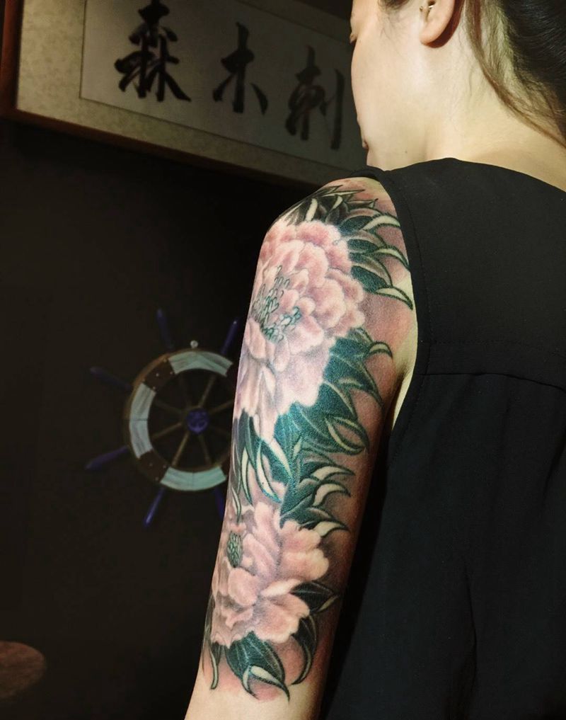 • 女性大花胸纹身_43张霸气漂亮的女性大花胸纹身图案作品