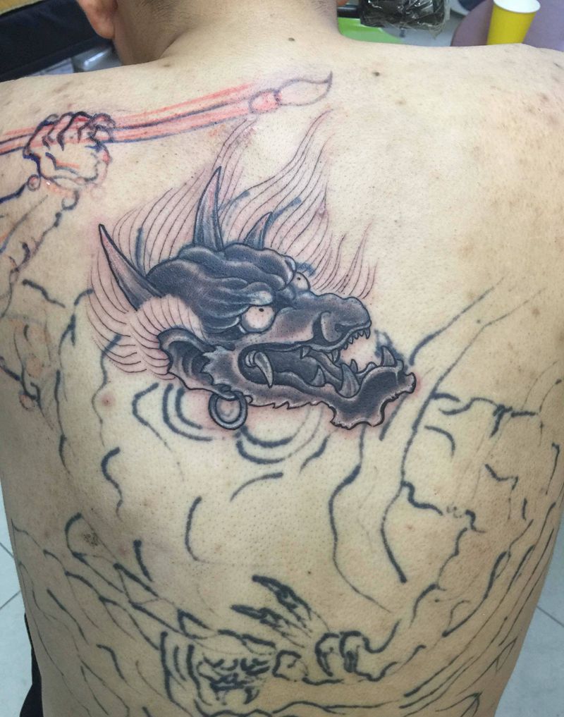 • T云龙九郎纹身图片_背部老传统云龙九郎纹身图案