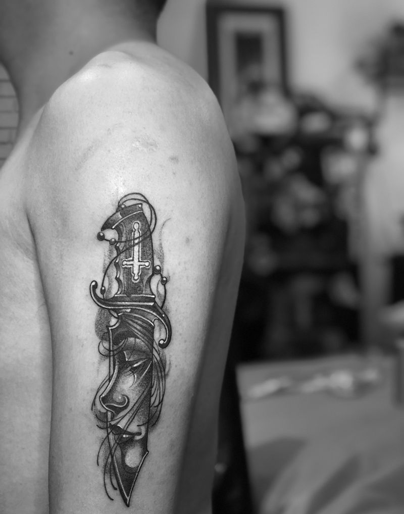 当前位置: 首页 >北京市纹身店-魔杰tattoo纹身图案>匕首纹身图片_手臂点刺纹身图案