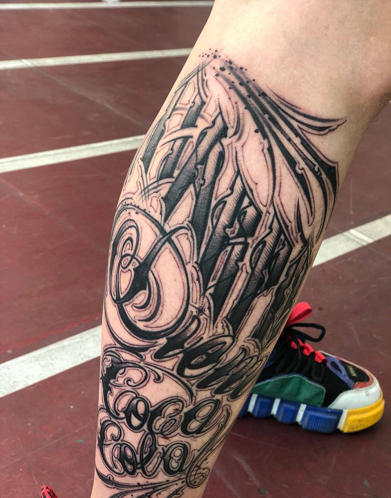 • T包小腿吹火男+阿多福纹身图片_腿部老传统新传统吹火男阿