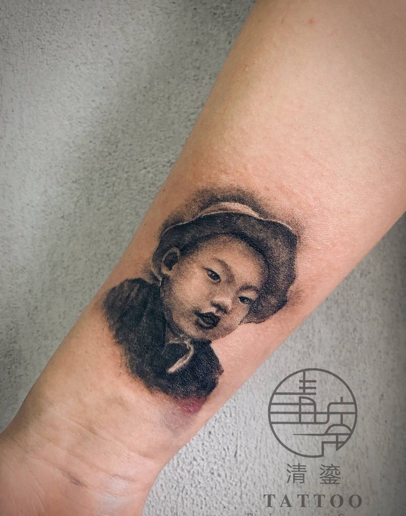 当前位置: 首页 >北京市纹身店-清鎏刺青纹身图案>肖像纹身图片_手臂欧美写实纹身图案