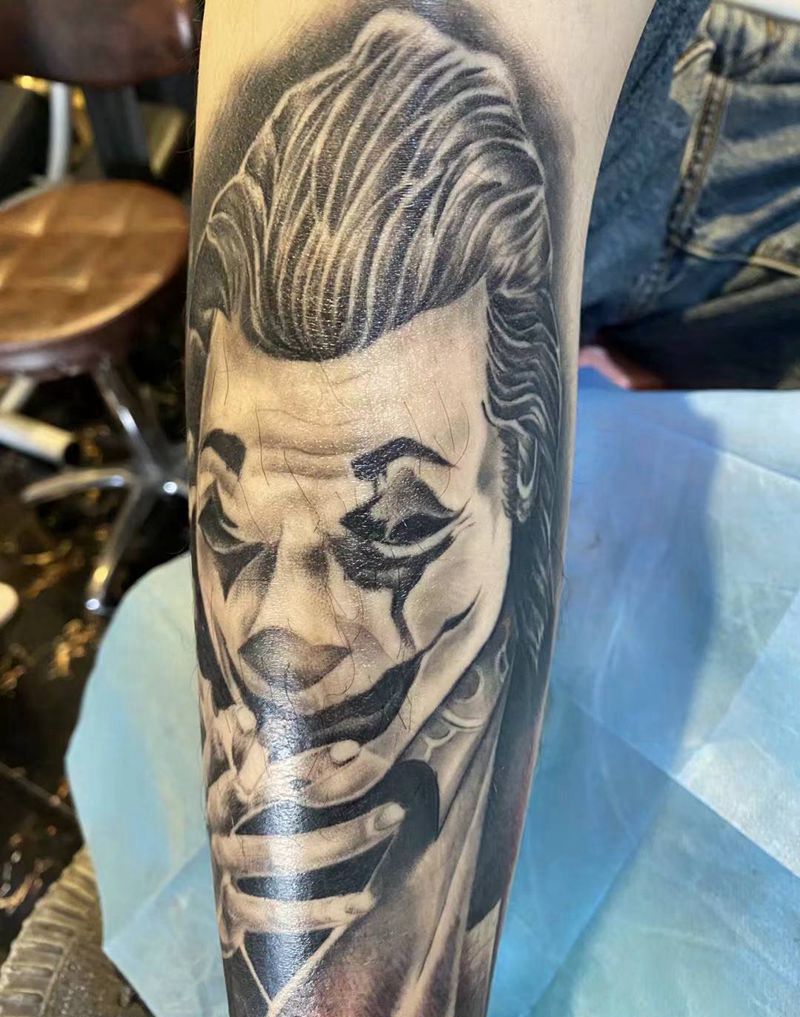 当前位置: 首页 >北京市纹身店-纹画人刺青纹身图案>小丑纹身图片_手臂手部欧美写实水墨纹身图案