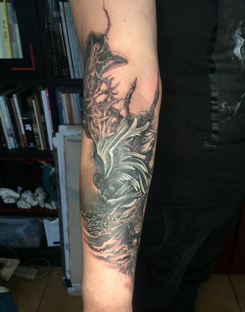 当前位置: 首页 >北京市纹身店-岸刺青纹身图案>幻梦纹身图片_成品手臂欧美写实原创鬼神人物植物纹身图案