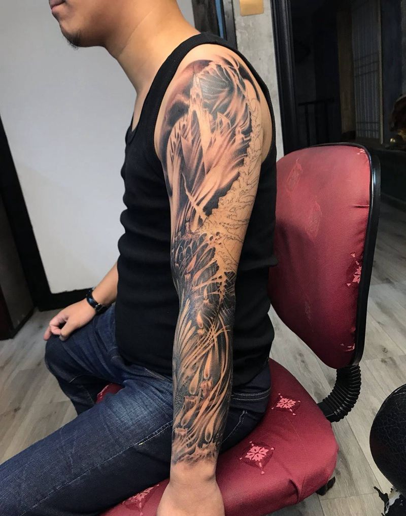 当前位置: 首页 >北京市纹身店-岸刺青纹身图案>哥特花臂 未完纹身图片_