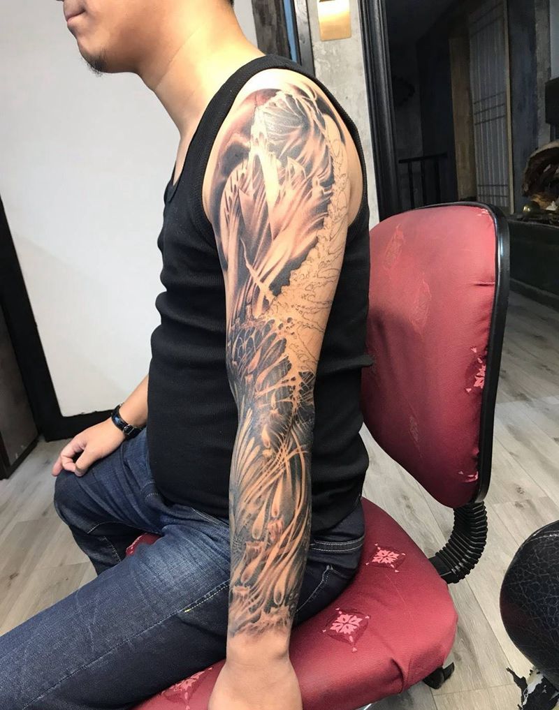 当前位置: 首页 >北京市纹身店-岸刺青纹身图案>哥特花臂 未完纹身图片_