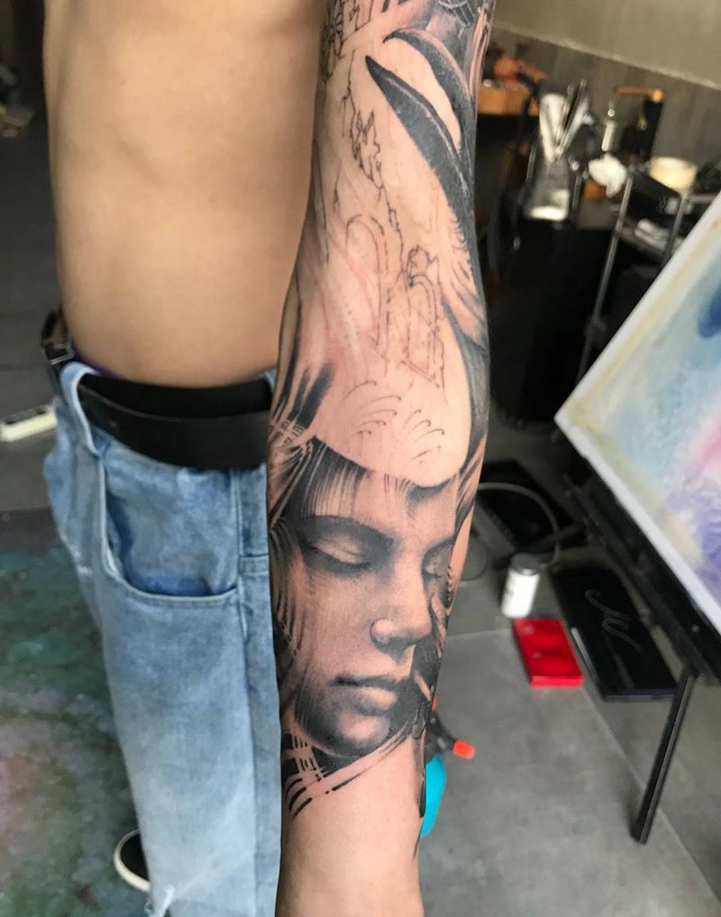 当前位置: 首页 >北京市纹身店-岸刺青纹身图案>反战花臂未完纹身图片_