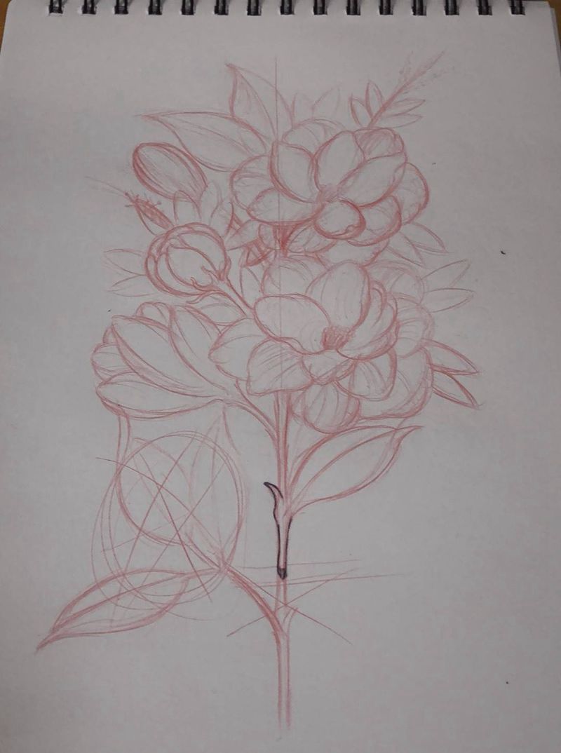 素花纹身图片_手稿成品背部清新植物原创纹身图案