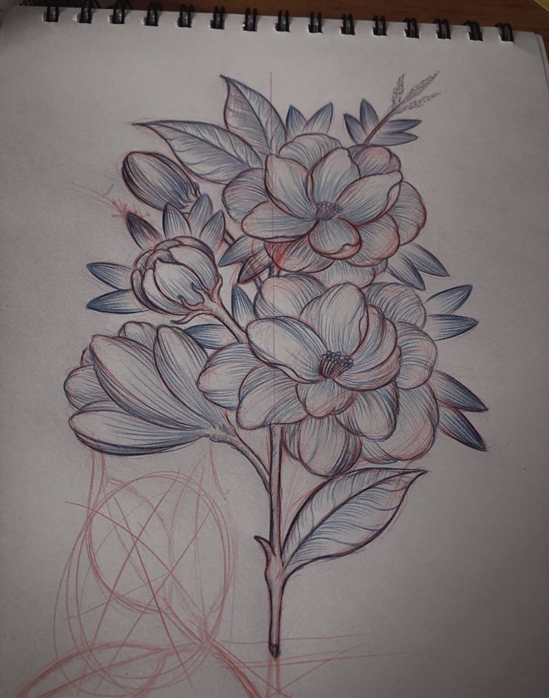 素花纹身图片_手稿成品背部清新植物原创纹身图案
