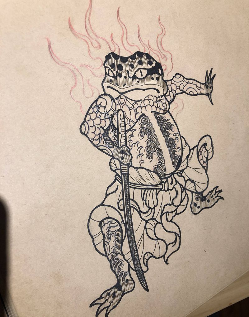 日式蛤蟆一只纹身图片_手臂新传统原创纹身图案