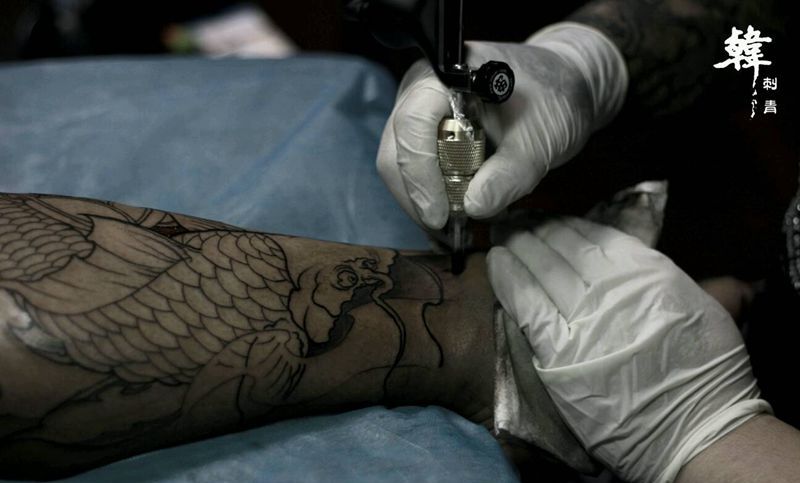 • T网红王老大花腿龙纹身图片_腿部新传统纹身图案