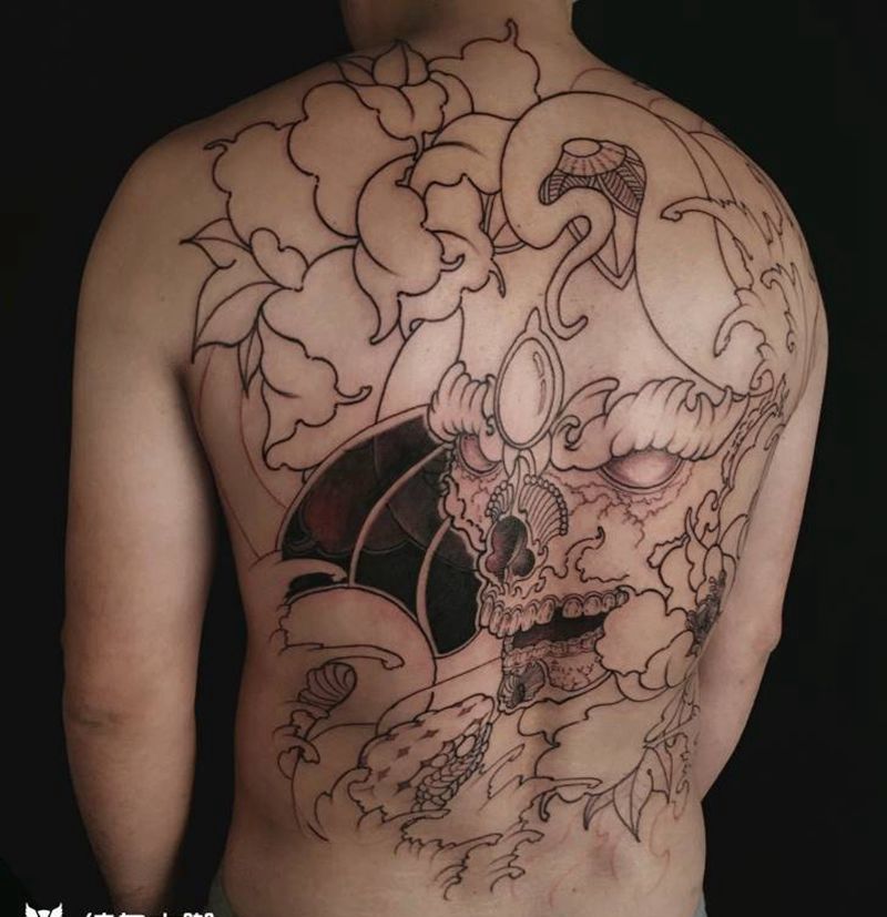 黑灰满背纹身图案