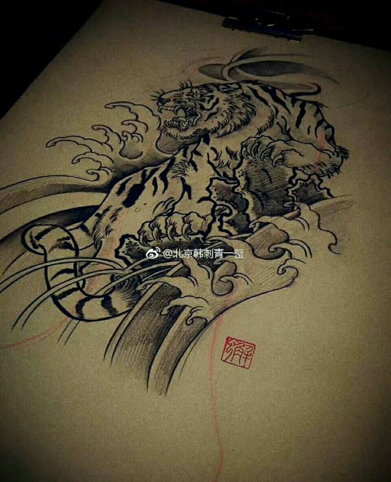 黑灰满背纹身图案