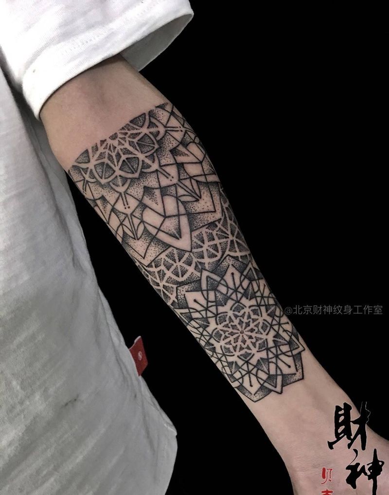 点线-刺纹身图片_成品手臂几何欧美传统纹身图案