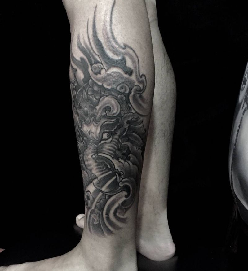 • T网红王老大花腿龙纹身图片_腿部新传统纹身图案