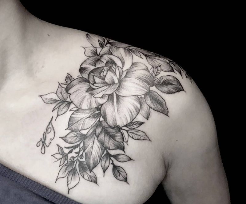 • 女性大花胸纹身_43张霸气漂亮的女性大花胸纹身图案作品