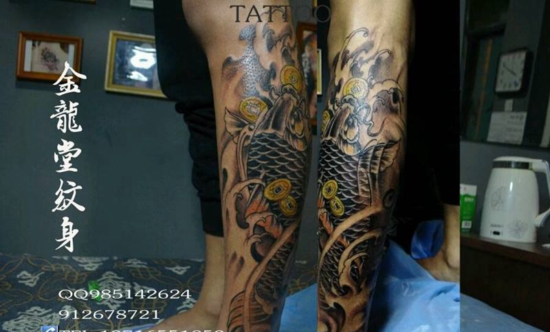 当前位置: 首页 >北京市纹身店-金龙堂纹身纹身图案>小腿外侧鲤鱼纹身纹身图片_腿部传统动物原创成品手稿纹身图案