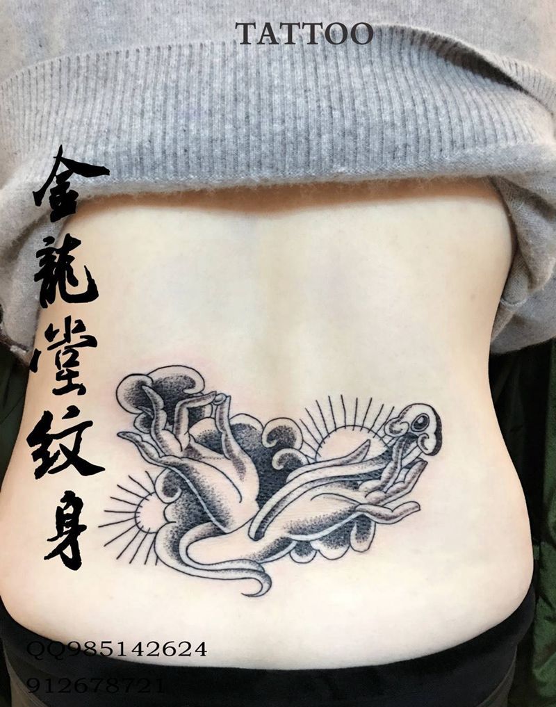 如意,手祥云纹身图片_成品腰部传统宗教纹身图案
