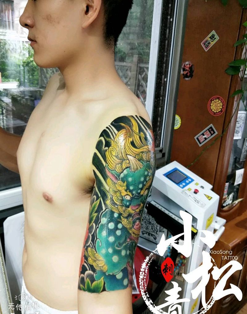 当前位置: 首页 >北京市纹身店-小松刺青工作室纹身图案>唐狮纹身图片_肩部手臂新传统纹身图案