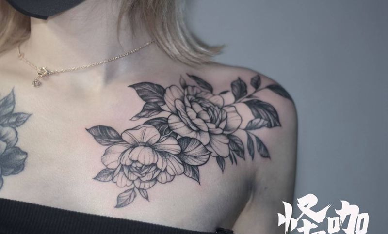 素花tattoo纹身图片_肩部纹身图案