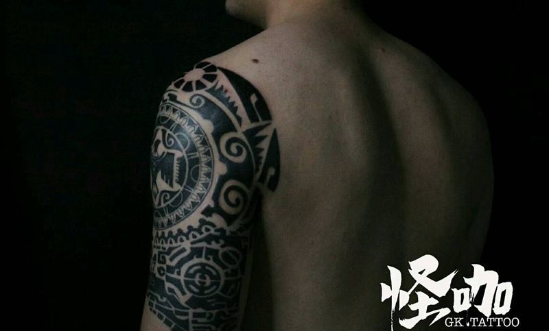 • 纹身吧推荐的披肩图腾半胛纹身图案作品展示