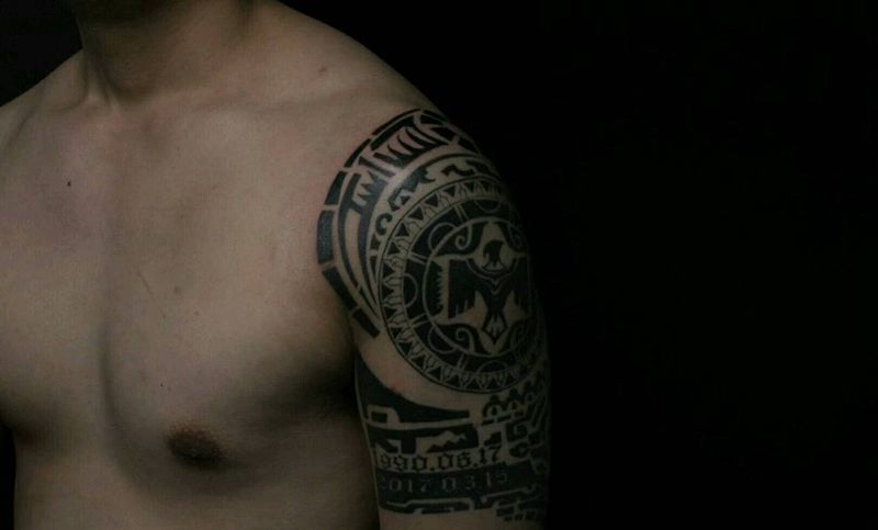 • 纹身吧推荐的披肩图腾半胛纹身图案作品展示