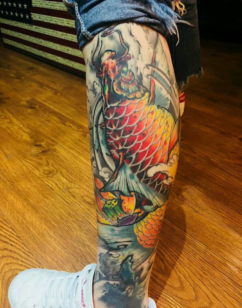 锦鲤纹身图片_腿部传统成品纹身图案