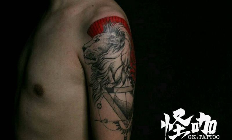 当前位置: 首页 >天津市纹身店-怪咖纹身刺青纹身图案>狮子纹身图片_手臂欧美几何动物成品纹身图案