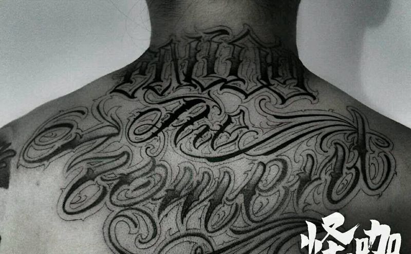 花体字纹身图片_颈部胸部腹部背部手臂腿部字符原创花体字成品纹身图案