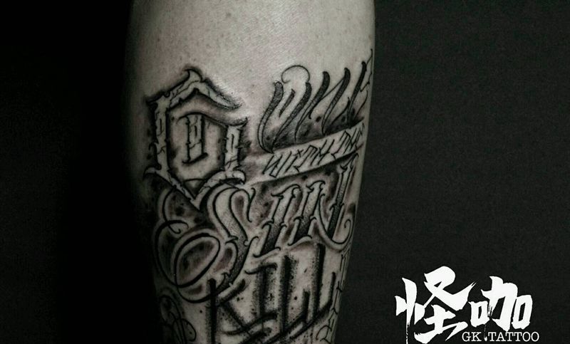 当前位置: 首页 >天津市纹身店-怪咖纹身刺青纹身图案>花体字纹身图片_腿部字符原创成品纹身图案