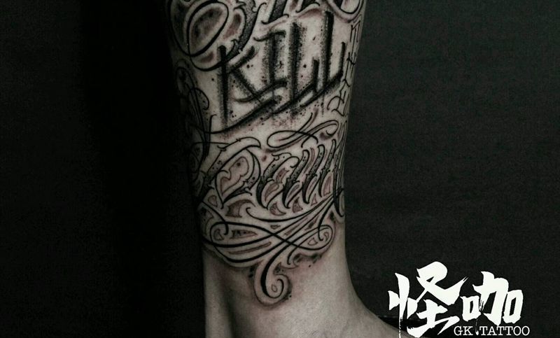 当前位置: 首页 >天津市纹身店-怪咖纹身刺青纹身图案>花体字纹身图片_腿部字符原创成品纹身图案