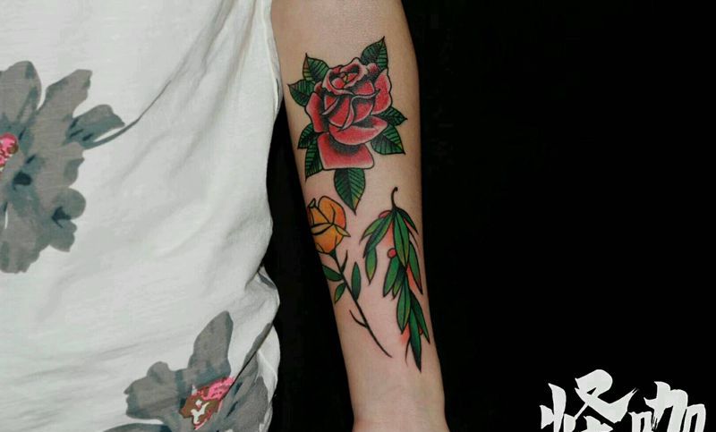 当前位置: 首页 >天津市纹身店-怪咖纹身刺青纹身图案>玫瑰纹身图片_手臂欧美植物原创成品纹身图案