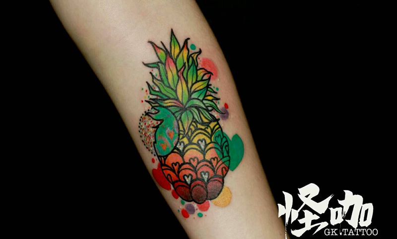 菠萝纹身图片_手臂欧美清新植物原创成品纹身图案