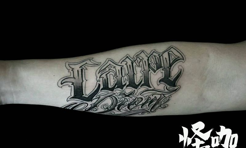 当前位置: 首页 >天津市纹身店-怪咖纹身刺青纹身图案>花体字纹身图片_手臂欧美字符原创成品纹身图案