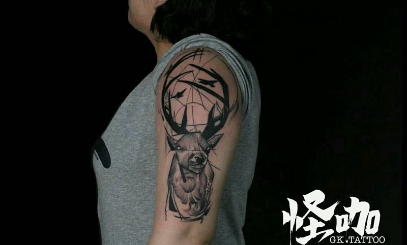 当前位置: 首页 >天津市纹身店-怪咖纹身刺青纹身图案>鹿纹身图片_手臂欧美动物原创成品纹身图案