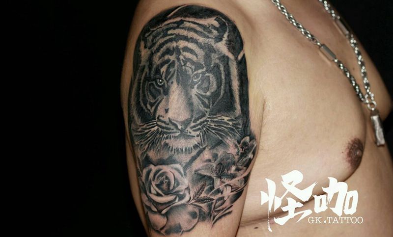 当前位置: 首页 >天津市纹身店-怪咖纹身刺青纹身图案>心有猛虎细嗅蔷薇纹身图片_手臂欧美动物植物原创成品纹身图案