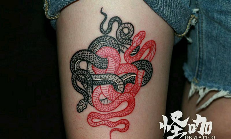 当前位置: 首页 >天津市纹身店-怪咖纹身刺青纹身图案>蛇纹身图片_腿部欧美动物原创成品纹身图案