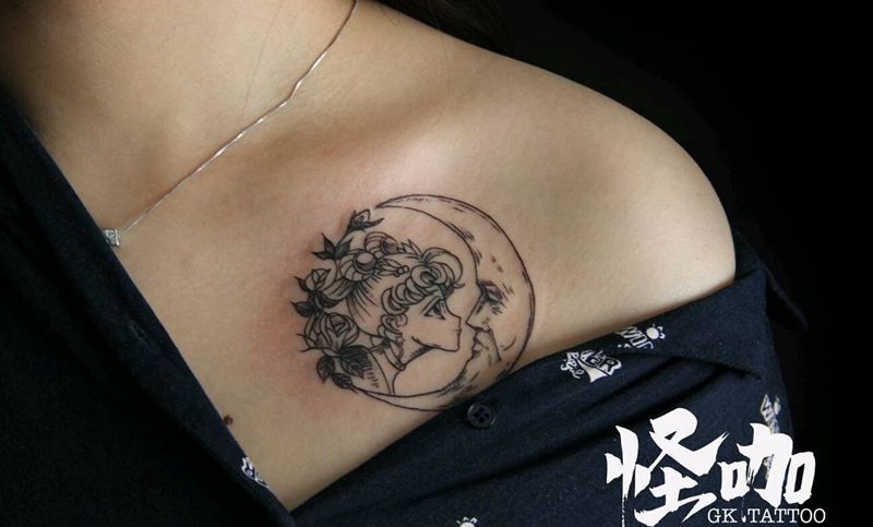 动漫纹身图片_肩部欧美人物原创成品纹身图案