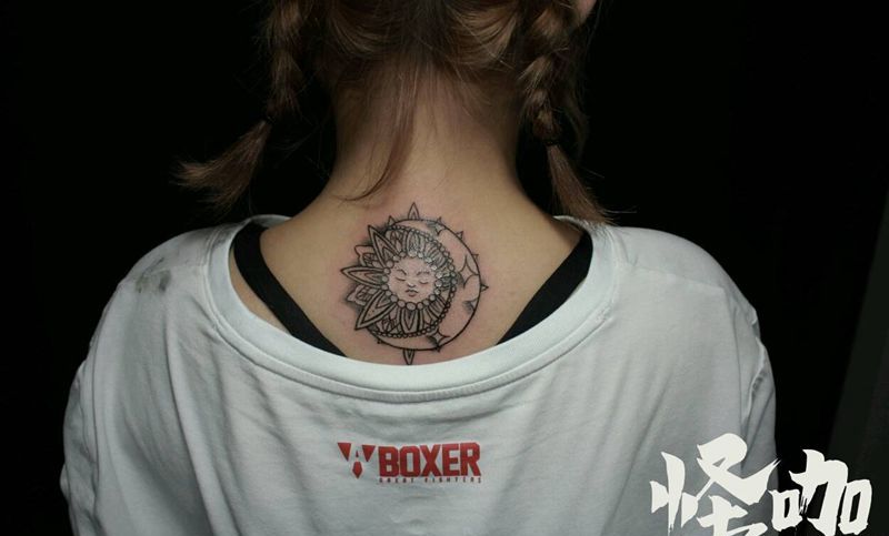 黑灰满背纹身图案