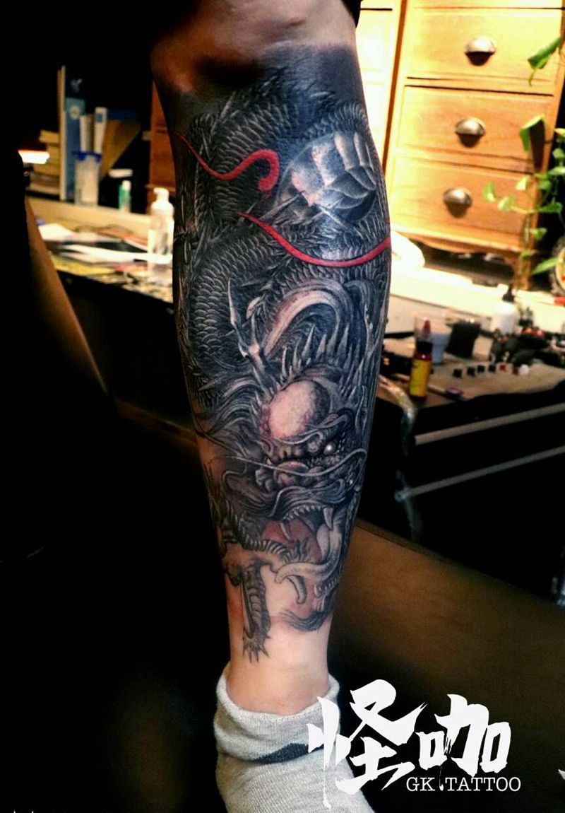 当前位置: 首页 >天津市纹身店-怪咖纹身刺青纹身图案>龙,包小腿纹身图片_