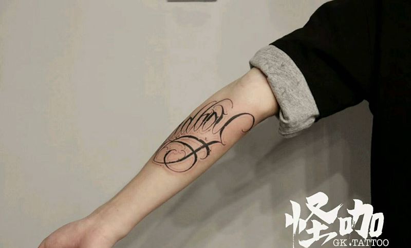 花体字纹身图片_手臂花体字纹身图案