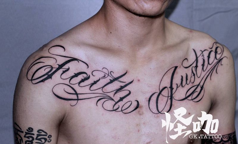 当前位置: 首页 >天津市纹身店-怪咖纹身刺青纹身图案>花体字纹身图片_胸部花体字纹身图案