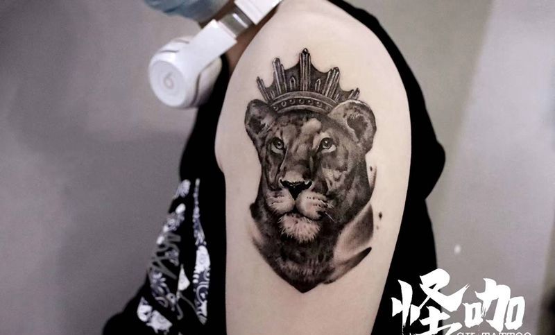 当前位置: 首页 >天津市纹身店-怪咖纹身刺青纹身图案>狮子纹身图片_手臂欧美写实纹身图案