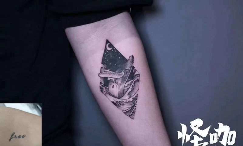 当前位置: 首页 >天津市纹身店-怪咖纹身刺青纹身图案>鲸鱼遮盖纹身图片_手臂纹身图案