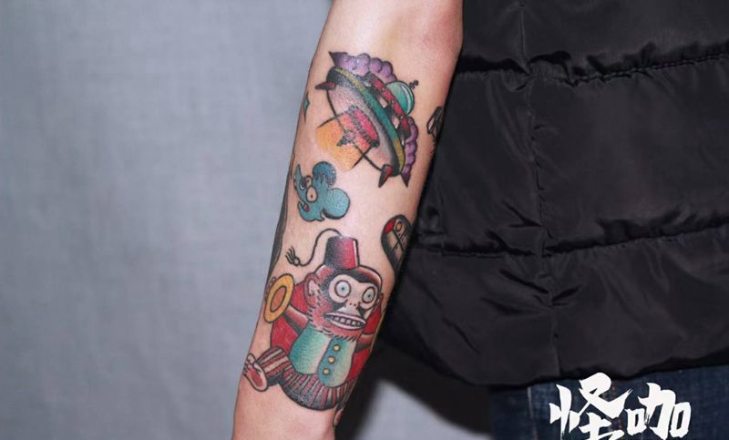 当前位置: 首页 >天津市纹身店-怪咖纹身刺青纹身图案>old school 拼接纹身图片_手臂Old School纹身图案