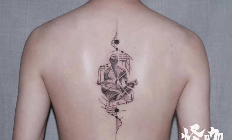 意识流纹身图片_背部几何纹身图案