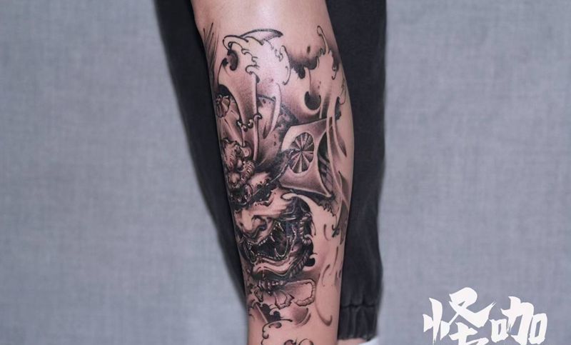 当前位置: 首页 >天津市纹身店-怪咖纹身刺青纹身图案>新传统鬼武士纹身图片_腿部新传统纹身图案