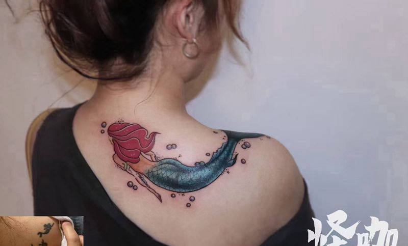 当前位置: 首页 >天津市纹身店-怪咖纹身刺青纹身图案>美人鱼遮盖纹身图片_肩部纹身图案