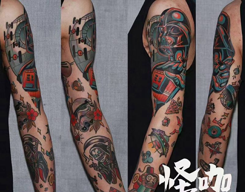 当前位置: 首页 >天津市纹身店-怪咖纹身刺青纹身图案>school花臂纹身图片_手臂Old School纹身图案